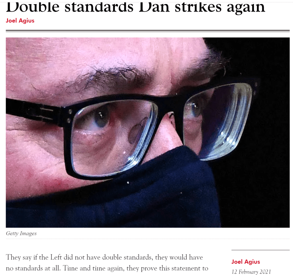 My latest piece for The Spectator Australia “Double Standards Dan Strikes Again” linked here: https://spectator.com.au/2021/02/double-standards-dan-strikes-again/