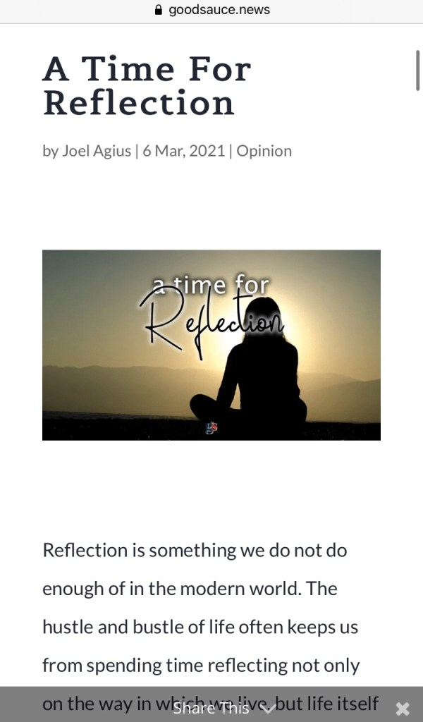 A Time For Reflection On March 6, 2021 By Joel AgiusIn Human Condition, Inspirational Read my latest piece on the importance of reflection here. Share this: Click to share on X (Opens in new window) X Click to share on Facebook (Opens in new window) Facebook Like Loading...