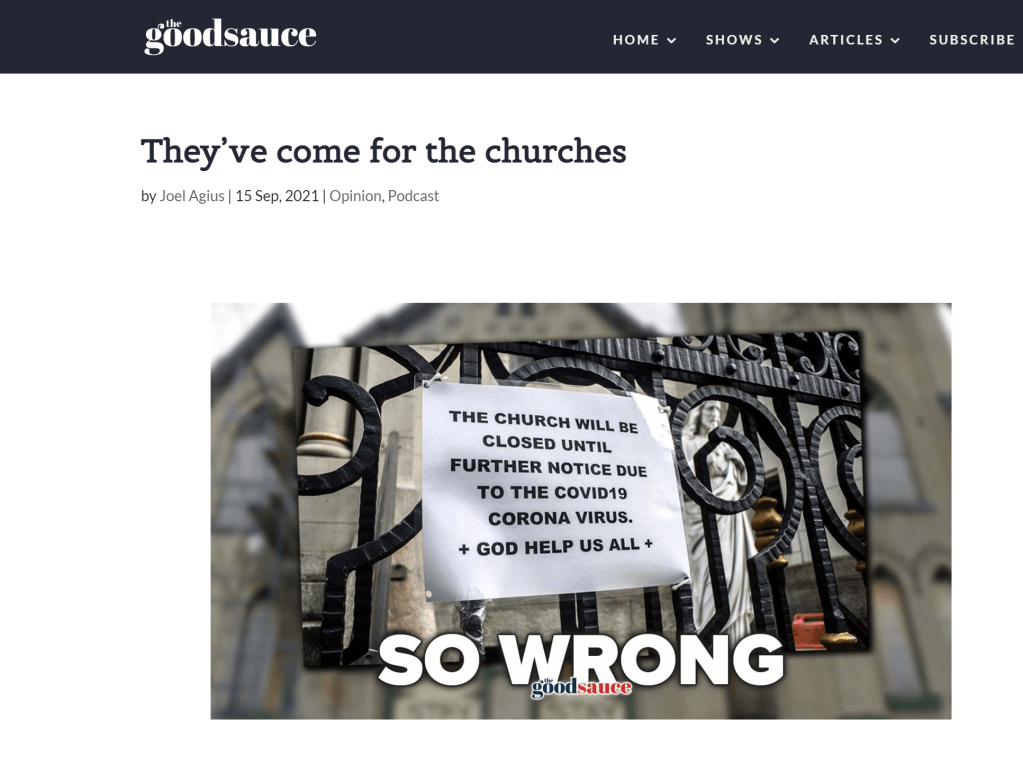 Read my latest piece for The Good Sauce: On the NSW Government’s segregative restrictions now being imposed upon places of worship.