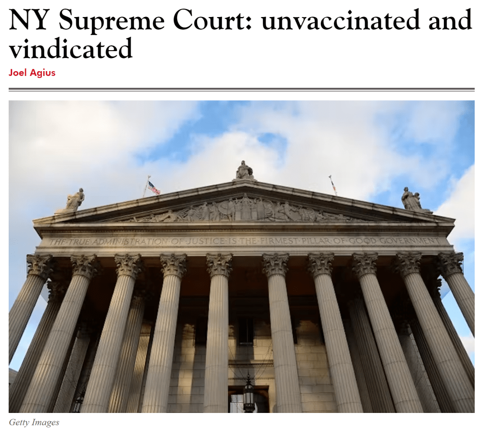 The NY Supreme Court decision is a big win for those who stuck to their guns and held out against the authoritarianism we saw over the last few years.